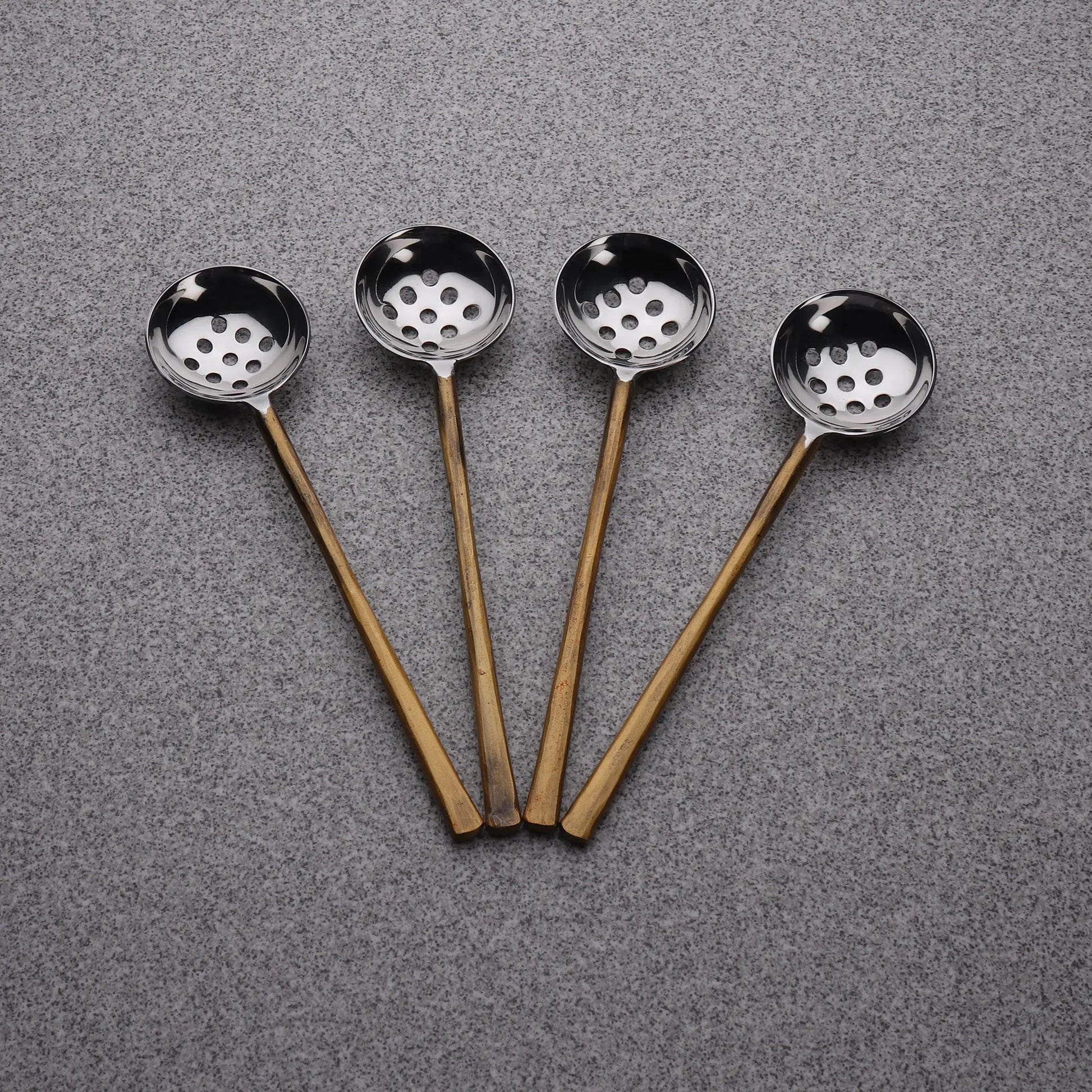 Our Medicki Olive Spoon 4 Pc. Set is perfect for the home bar and will be a handy accessory for your cheese boards and pickle platters. The perforated spoon lets you scoop and strain olives, capers, or cherries for cocktails and the long handles are ideal for reaching into jars.